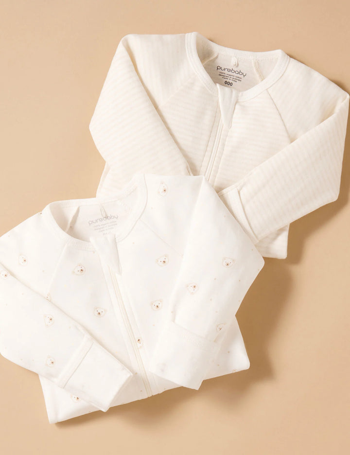 2-Pack Essentials Zip Growsuit is a newborn wardrobe must-have – and one of the best-selling Purebaby styles.
