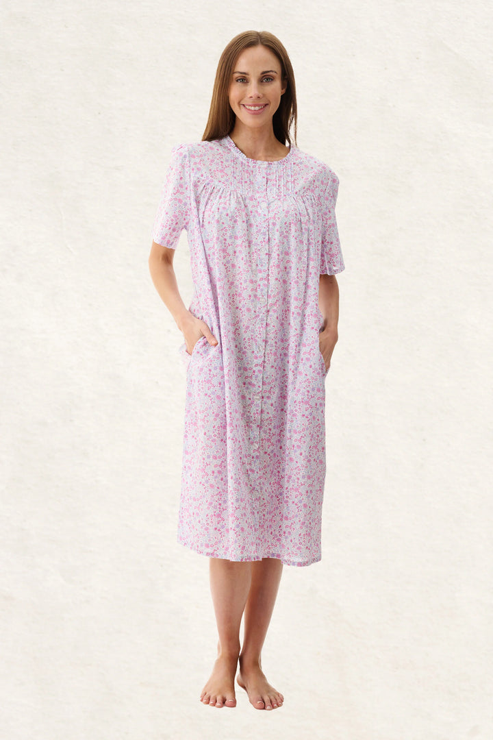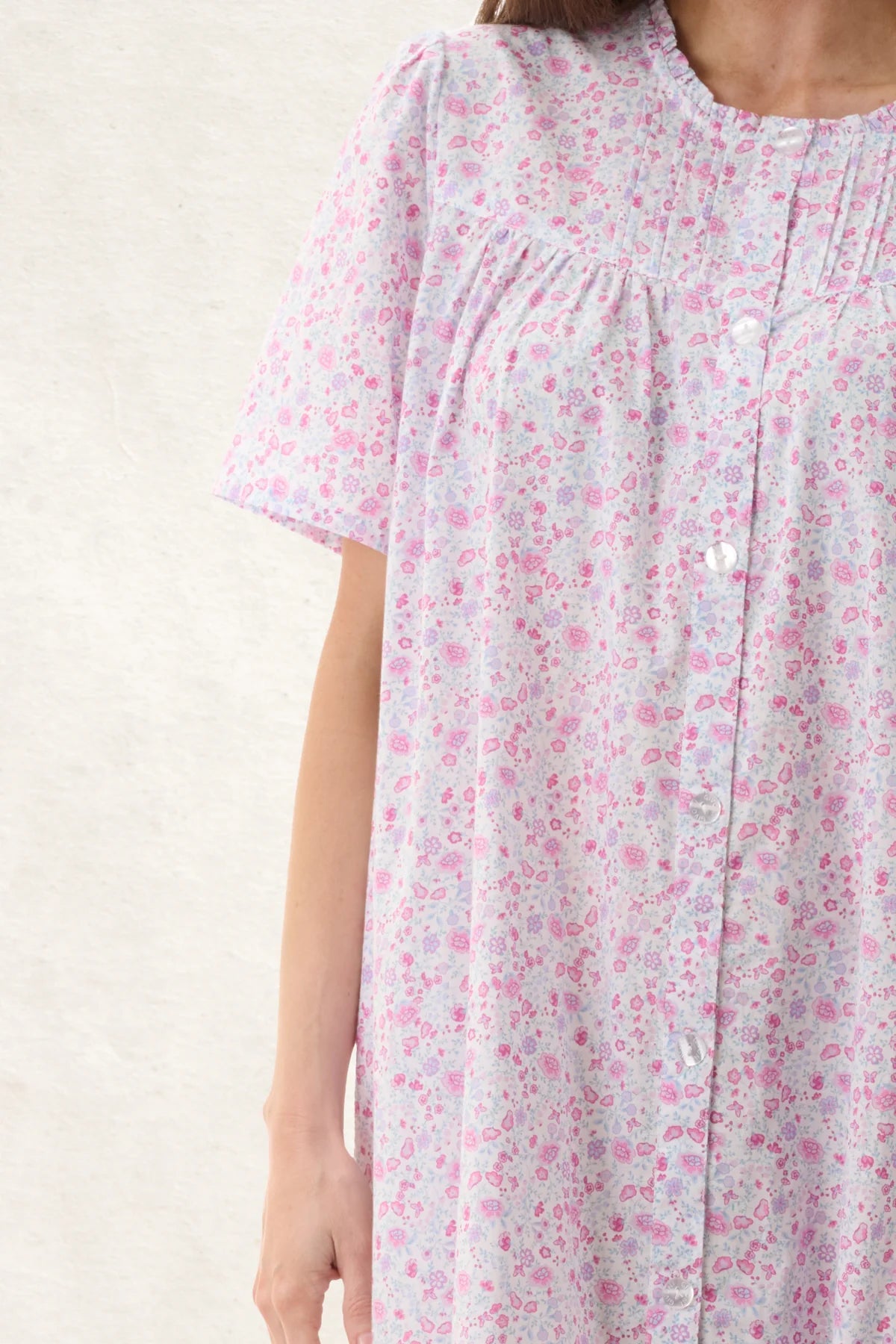 The Brodie by Givoni printed brunchcoat is a perfect blend of comfort and style, featuring a summery, multi-coloured print that brings a fresh and vibrant feel to your sleepwear collection. This brunchcoat is designed with a narrow self-gathered frill at the neckline, adding a subtle touch of elegance. Detailed with front button opening and front yoke with small pintucks on either side, creating a refined and feminine look. The softly gathered skirt flows gently from the yoke, offering ease and comfort throughout the night. For a complete look, layer over the Brodie Sleeveless nightie, the ideal complement to this beautiful brunchcoat.