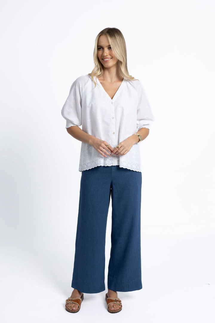 - Soft linen blend with more drape and wont crease as easily as 100% linen.