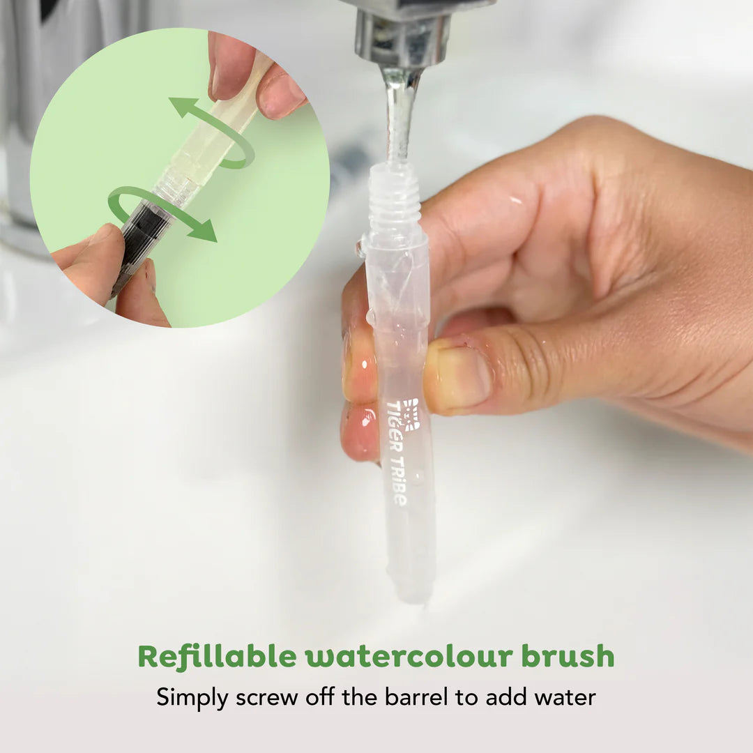 All-in-one kids watercolour painting set with built in pigments on each page
