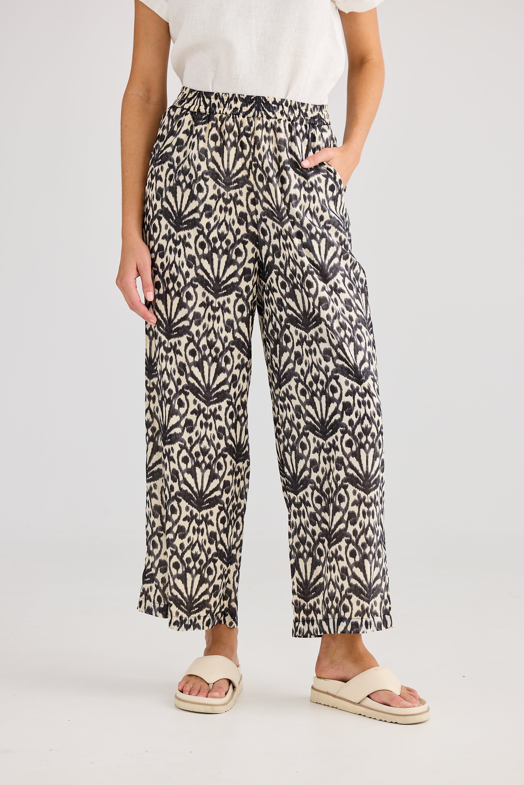 Experience comfort and style with the Playa Pant, featuring a roomy wide-leg design and a flexible elasticated waistband. Enjoy a flattering regular fit complemented by convenient cut-away pockets, perfect for everyday wear.