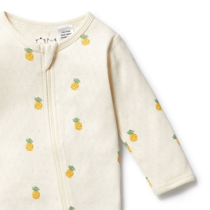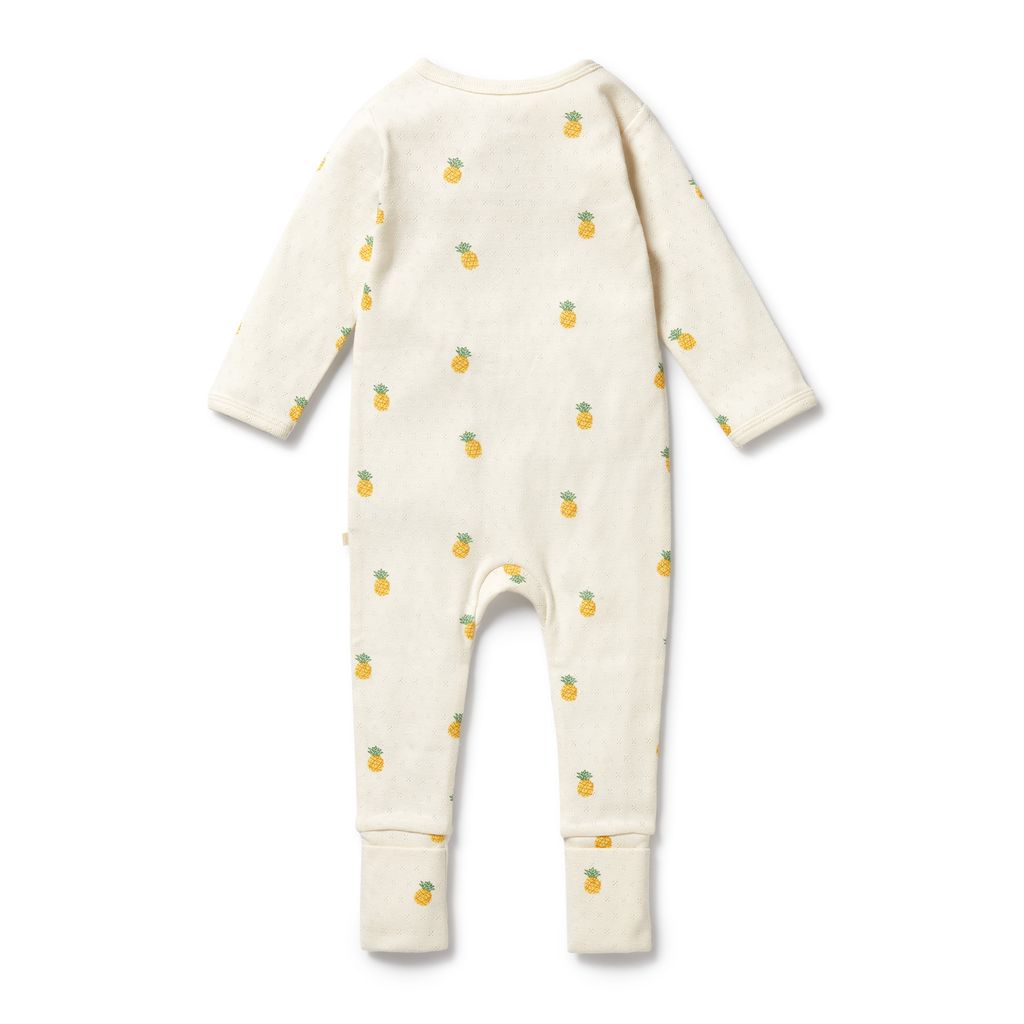 Keep your newborn comfy with this practical yet adorable piney pals organic pointelle zipsuit by Wilson and Frenchy with feet. The design features fold over mittens (Sizes newborn to 000) to protect your babies face from little fingernails, and the option of a footed foot for growing bodies. Crafted from GOTS-certified organic cotton pointelle, it is gentle on your babies sensitive skin, and extra handy when having to make nappy changes. Features a gorgeous hand-illustrated print. Key Features: Round neckline with concealed zipper for safety. Long sleeve with fold over mittens (newborn to 000). Full length with optional enclosed feet. Two-way zip closure for easy changes. Made from GOTS-certified organic cotton. Sustainably produced. Packaged in a bio-degradable bag. Details: 100% GOTS-certified organic cotton. Certified by: Control union GCL - 3699. Low fire danger - Complies to the AS, NZS 1249-2014 sleepwear standards. CAUTION - KEEP AWAY FROM HEAT AND FLAME. Machine washable. Made in India.