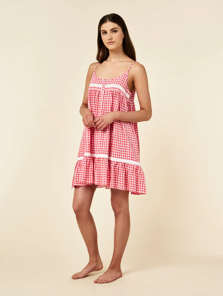 Seersucker Gingham Lace Trim Nightie